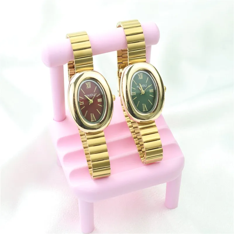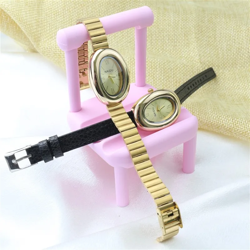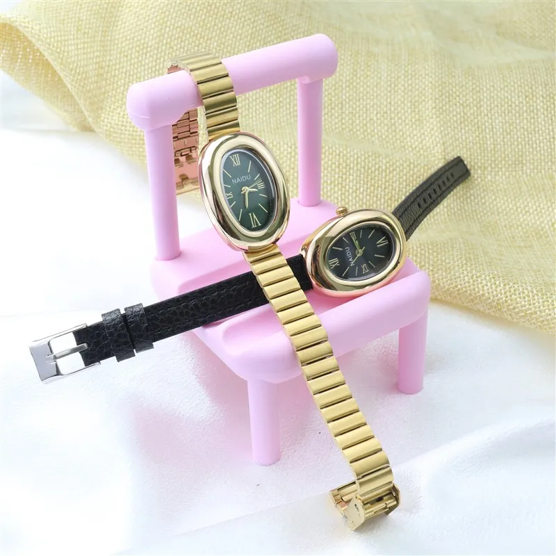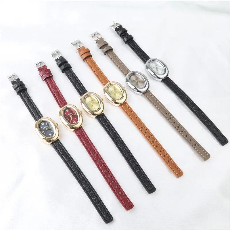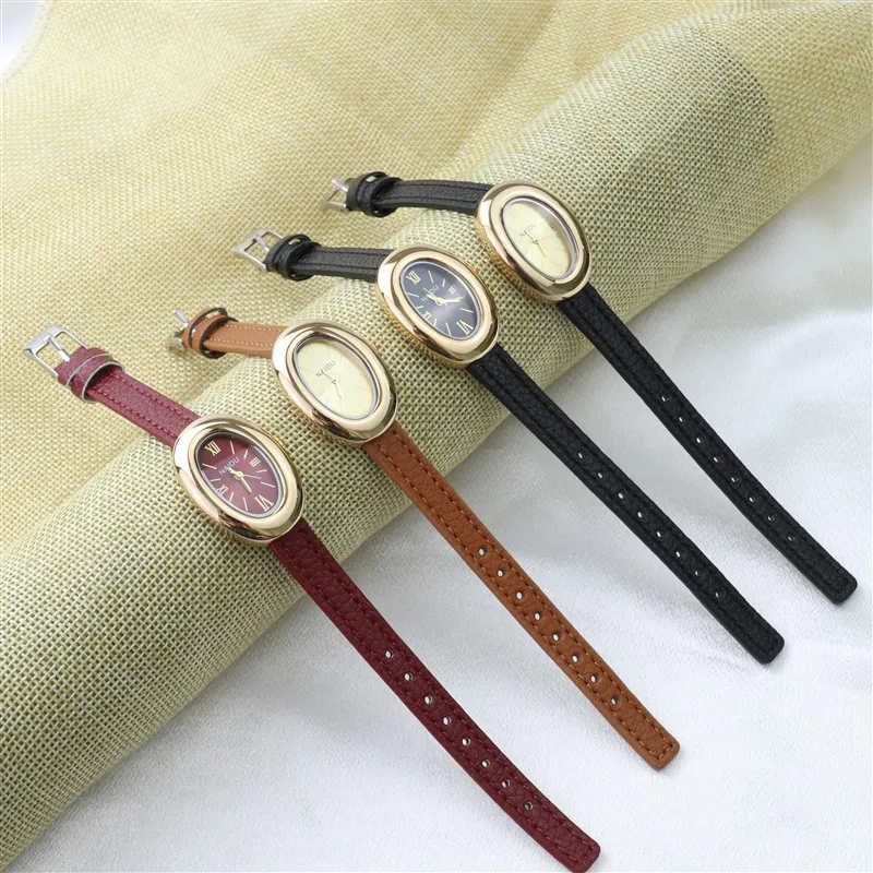 2025 New Oval Beautiful Ladies Watches for Women Girl Simple Leather and Stainless Steel bracelet acier inoxydables