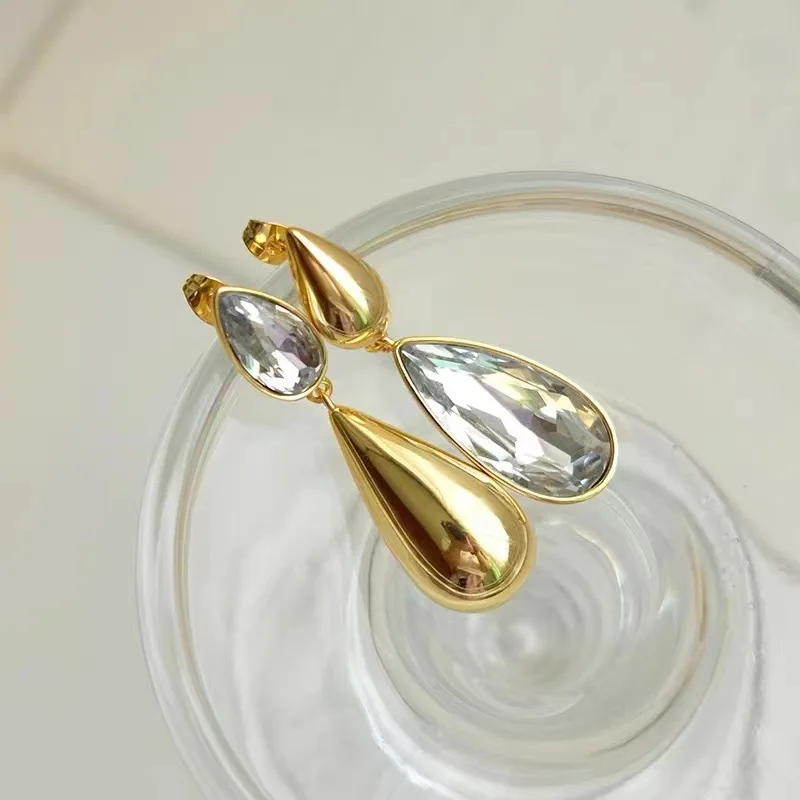 Asymmetric Crystal Pendant Earrings European And American Style Personality, Fashion Water Drops Stud Earrings Women Jewelry