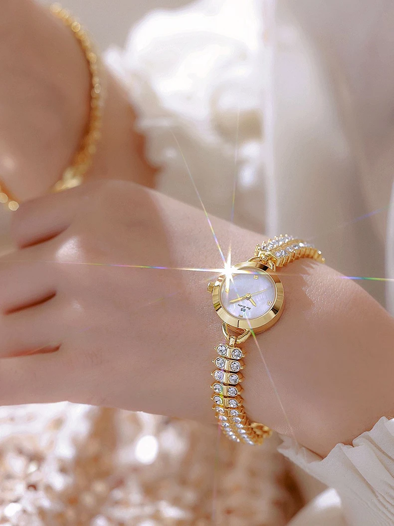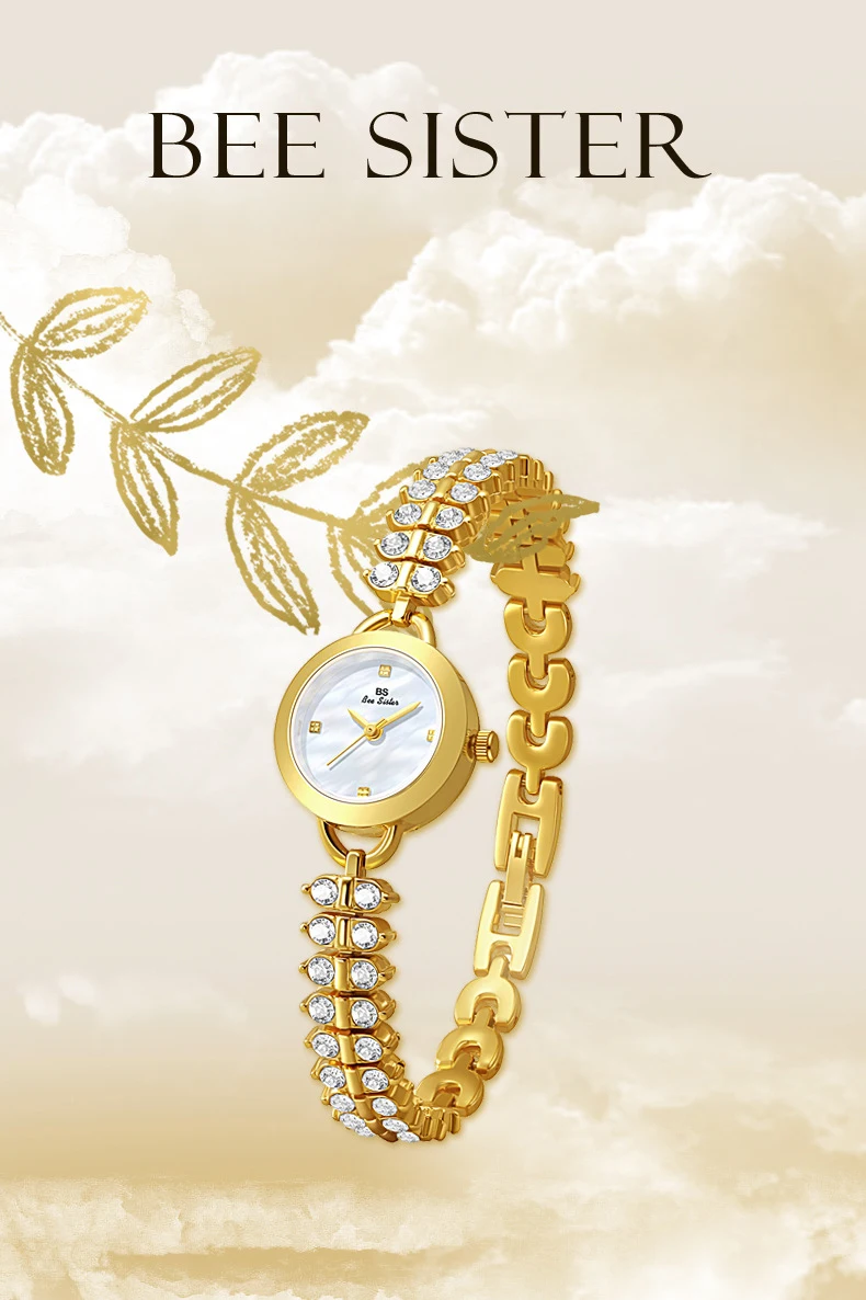 Bee Sister Watch Luxury Gold Small Chain Quartz Watches for Woman Hand Clock With Diamonds