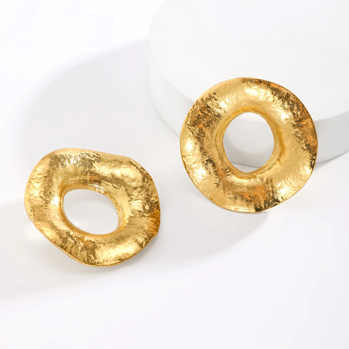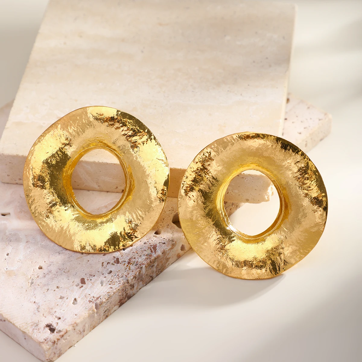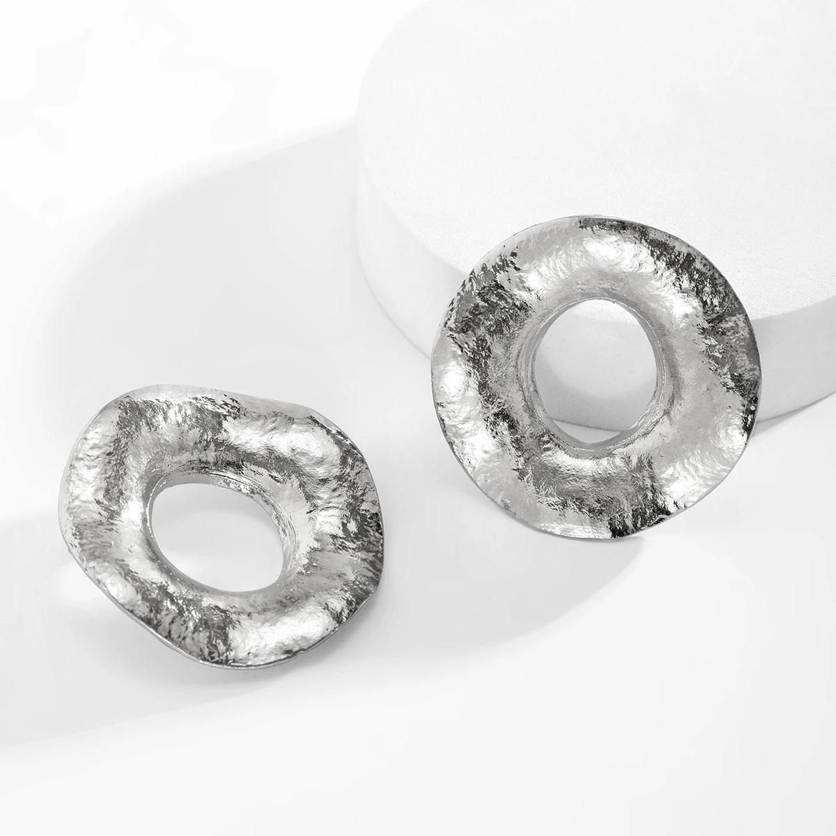 Big Metal Donuts Stud Earrings for Women Trendy Ladies Desinger Statement Earrings 2023 Fashion Jewelry Accessories Female Girls