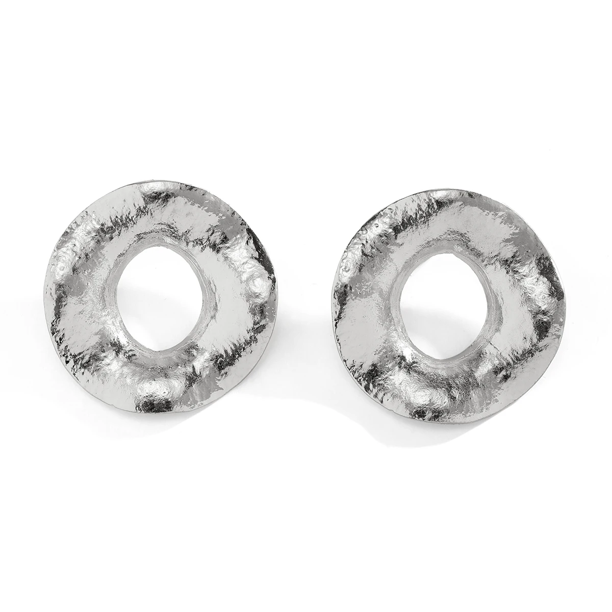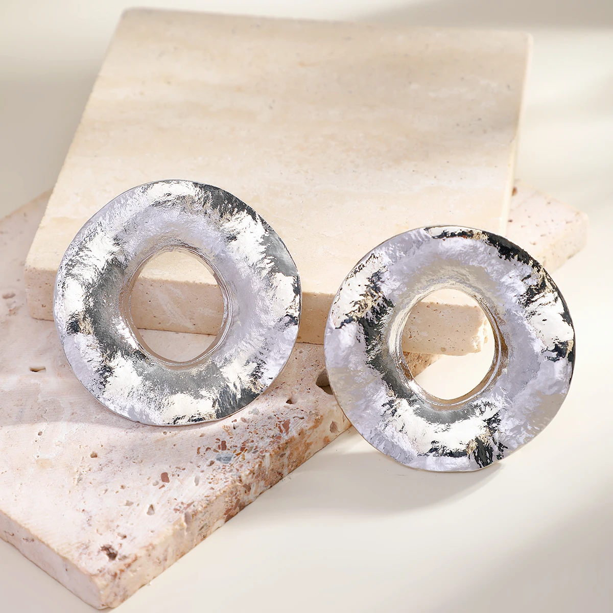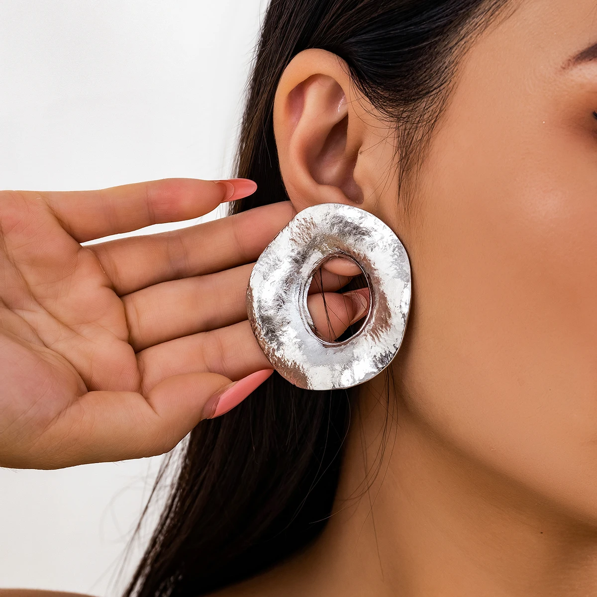 Big Metal Donuts Stud Earrings for Women Trendy Ladies Desinger Statement Earrings 2023 Fashion Jewelry Accessories Female Girls