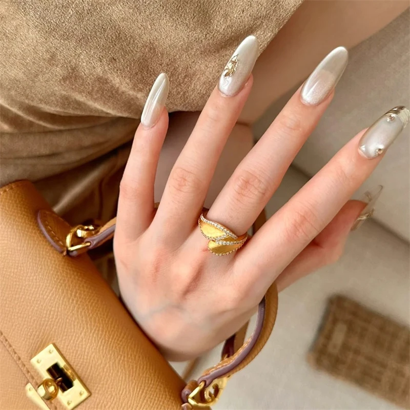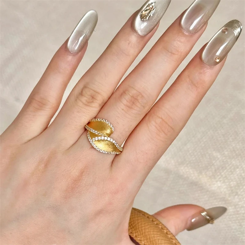 French Vintage Shiny Crystal Leaf Design Ring for Women Fashion Exquisite Stainless Steel Ring Luxury Jewelry Accessories Gift