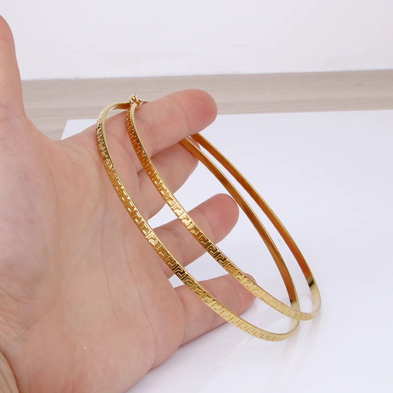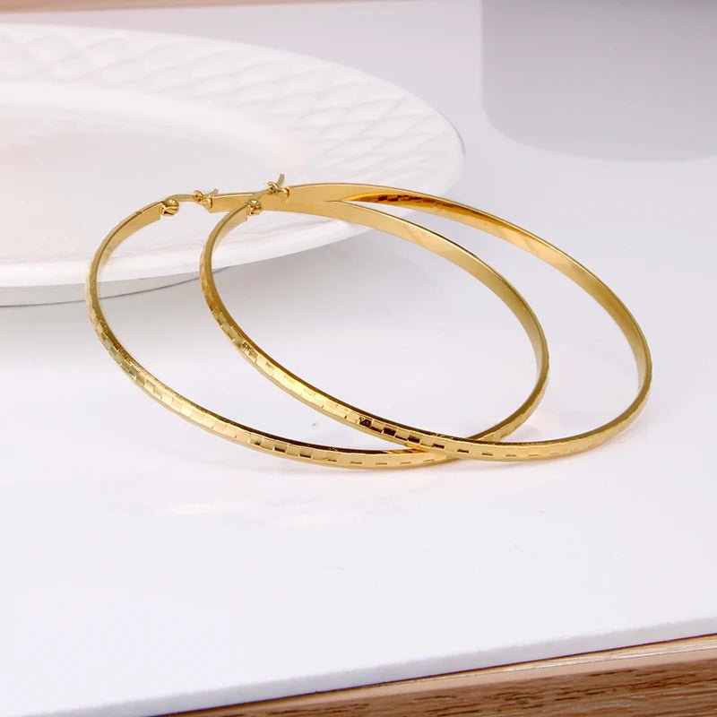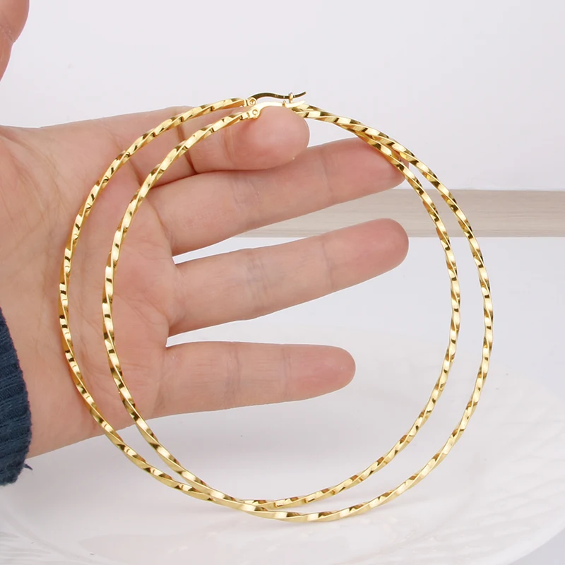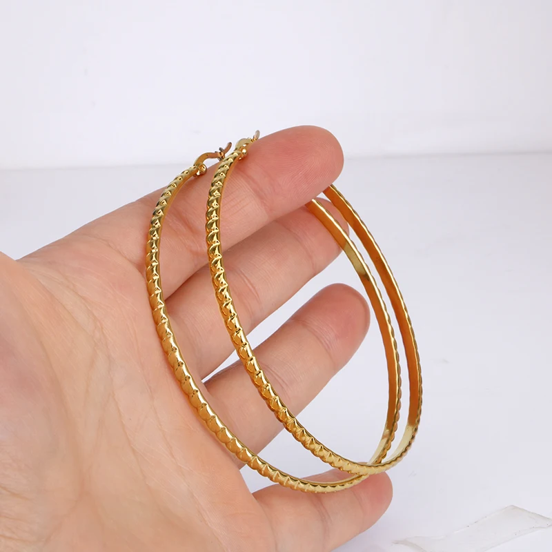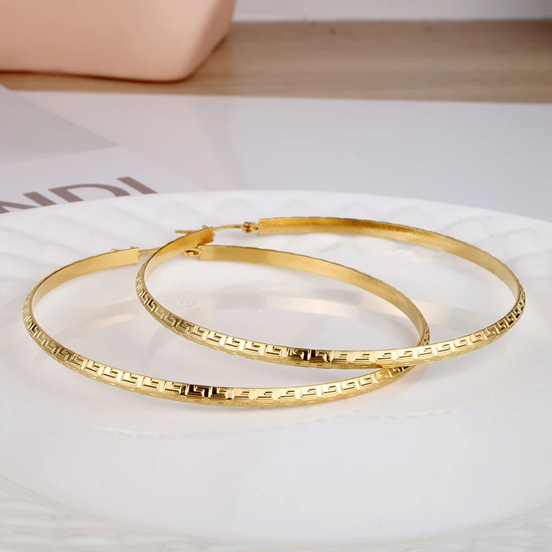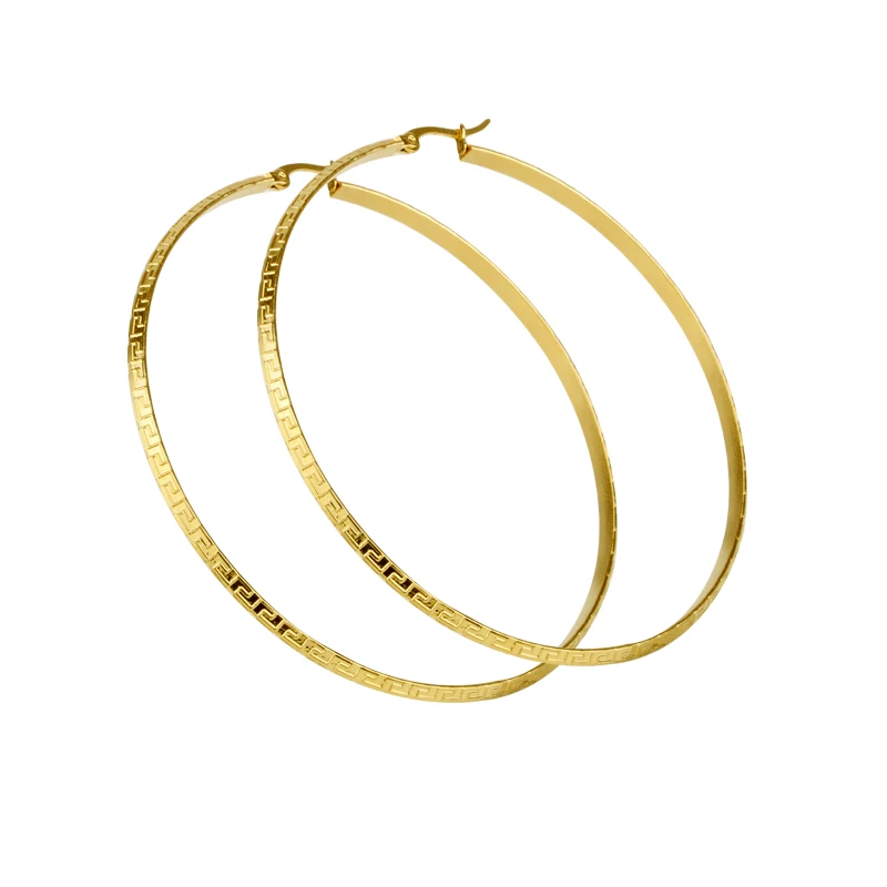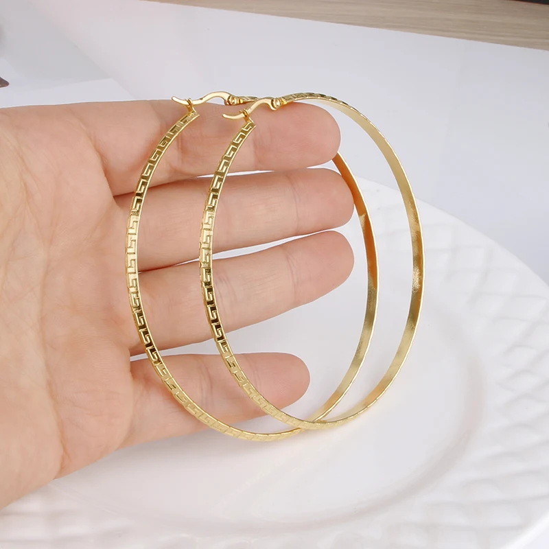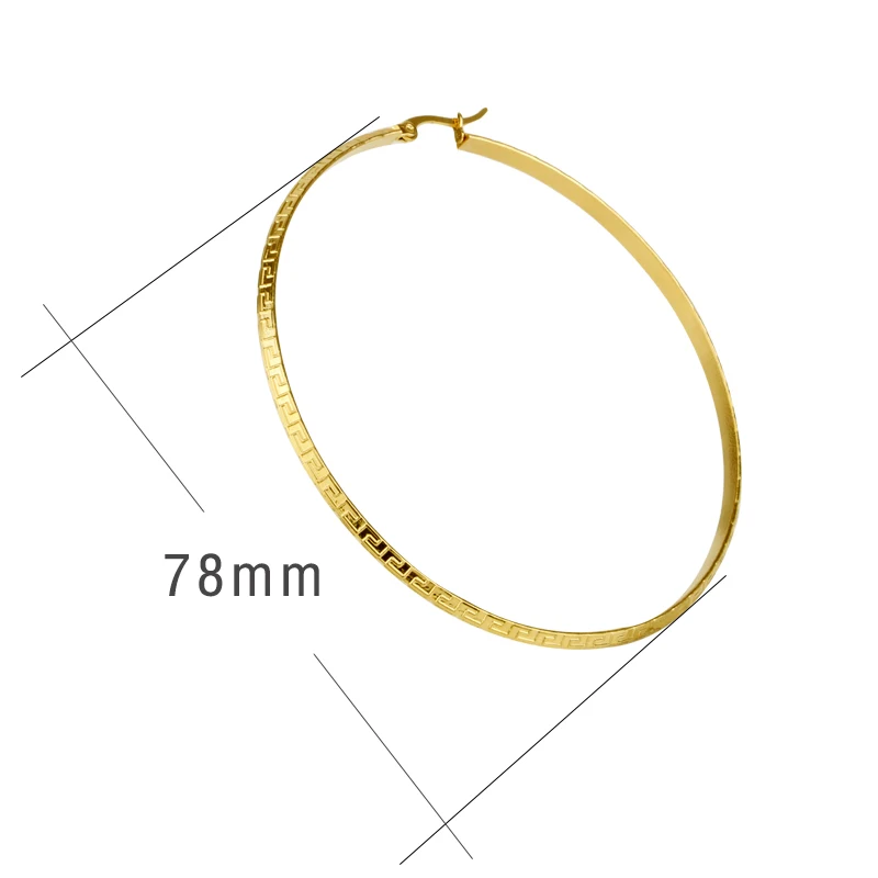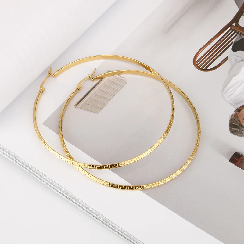 Hgflyxu Gold Color Stainless Steel Big Large Hoop Earring for Women Chinese Design Ladies Ear Fashion Jewelry Party High Quality