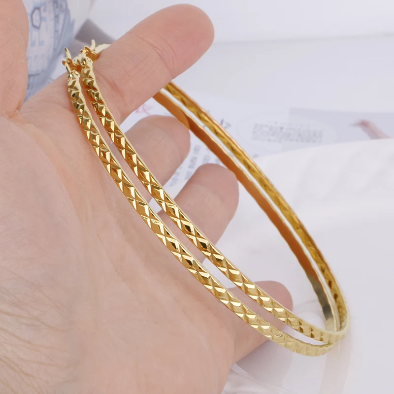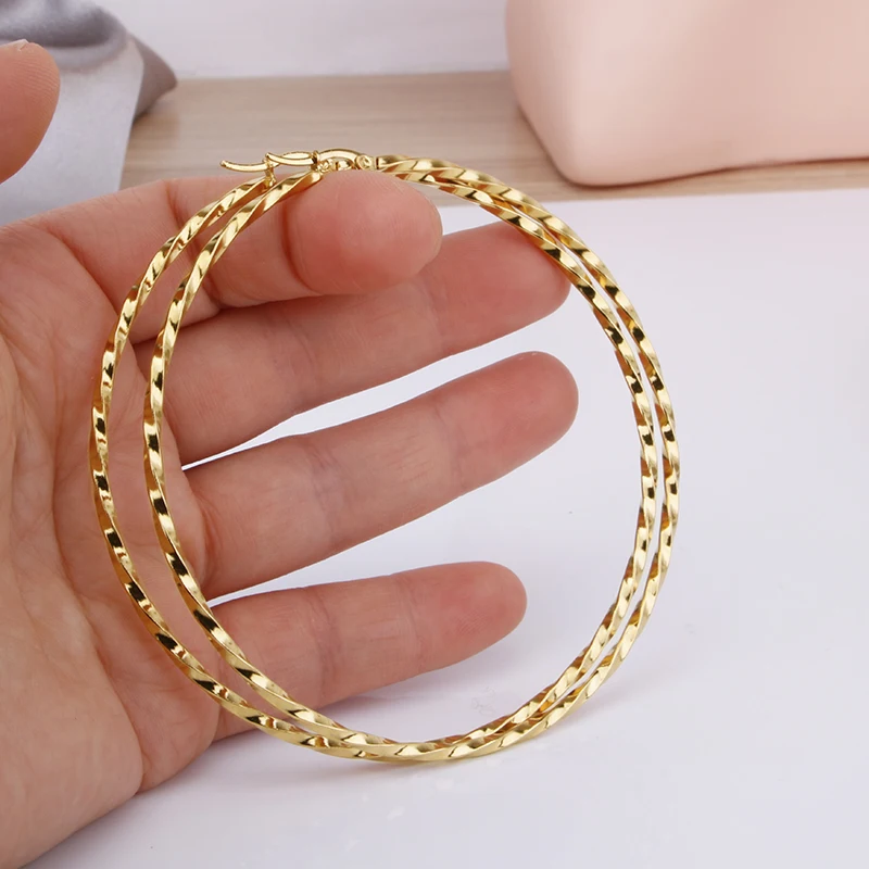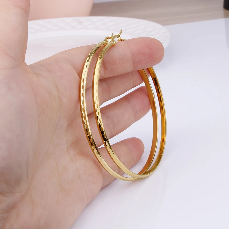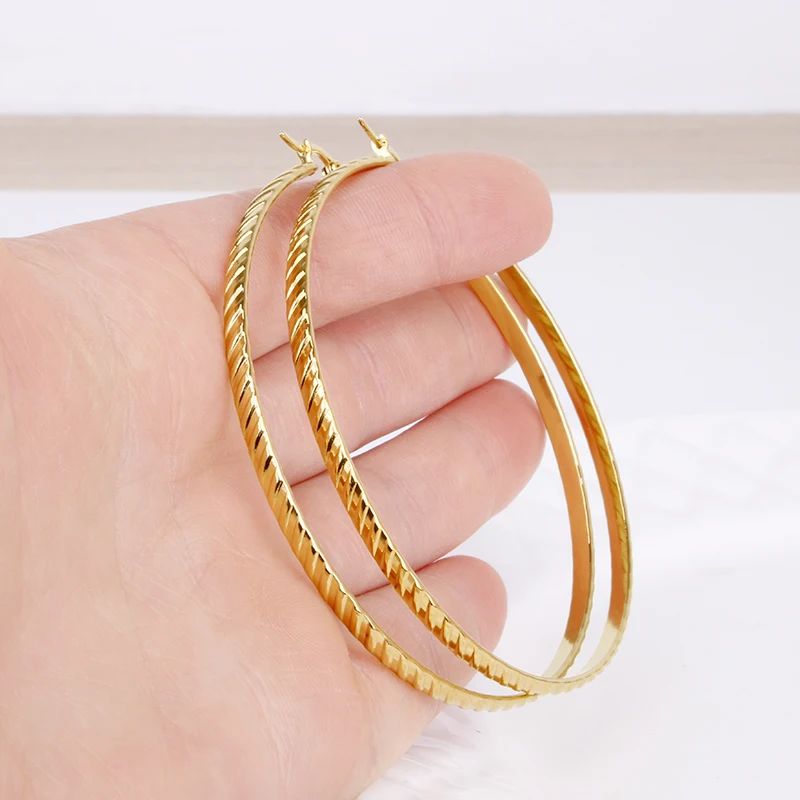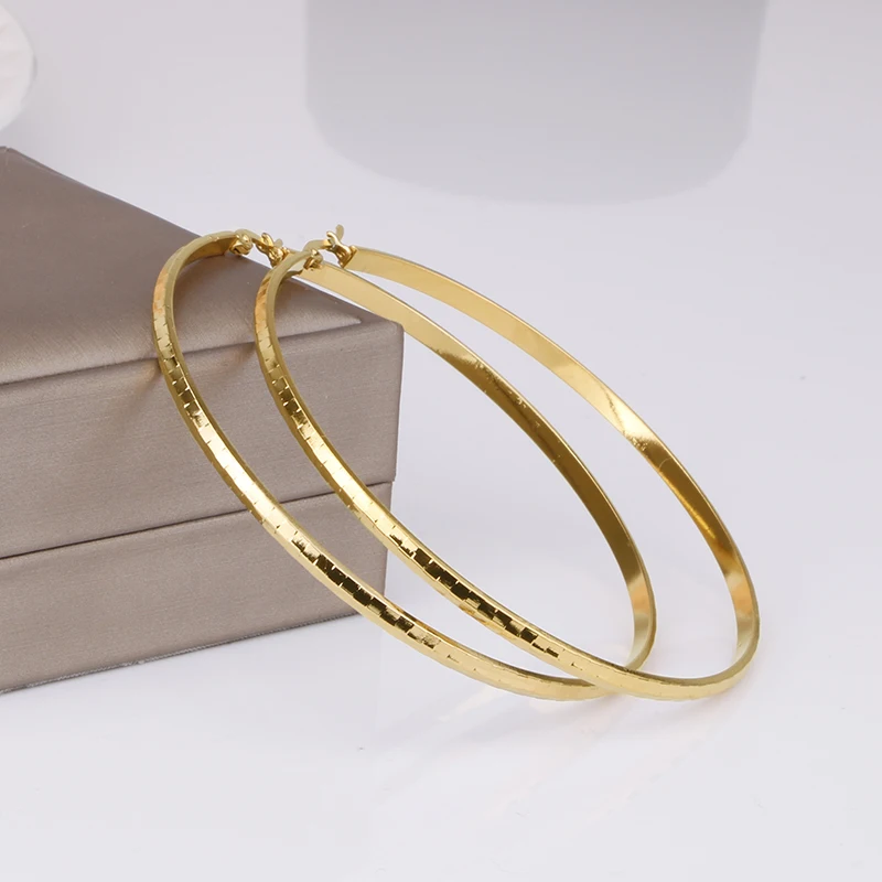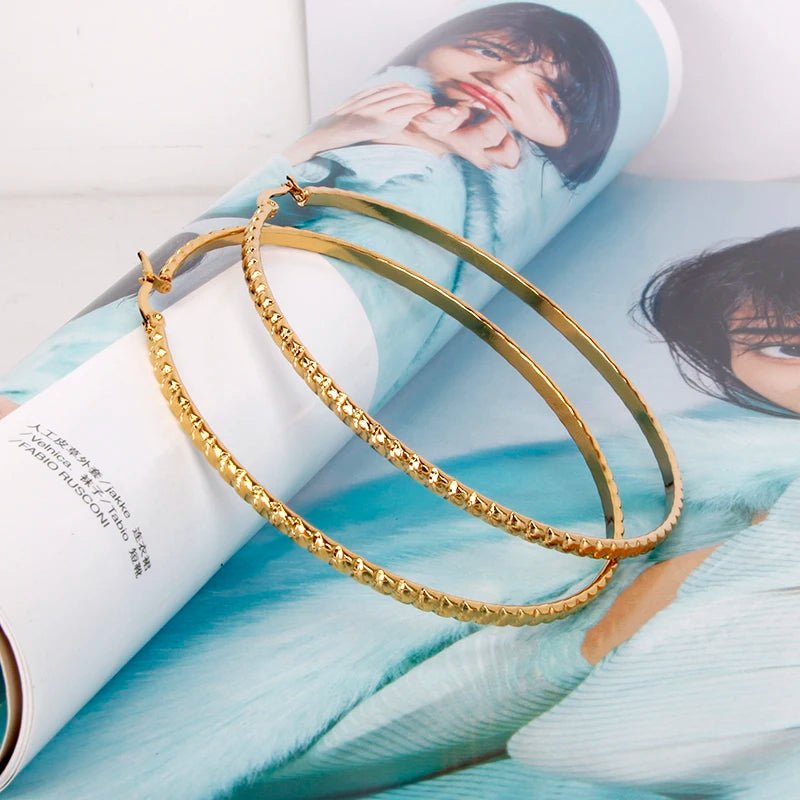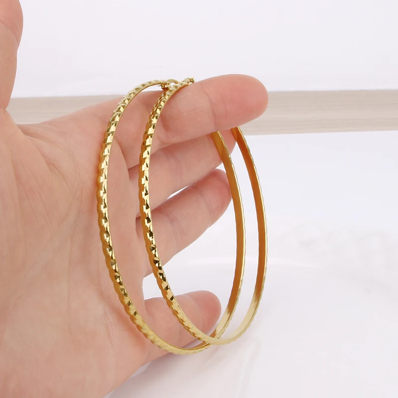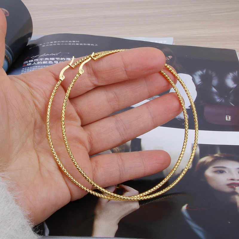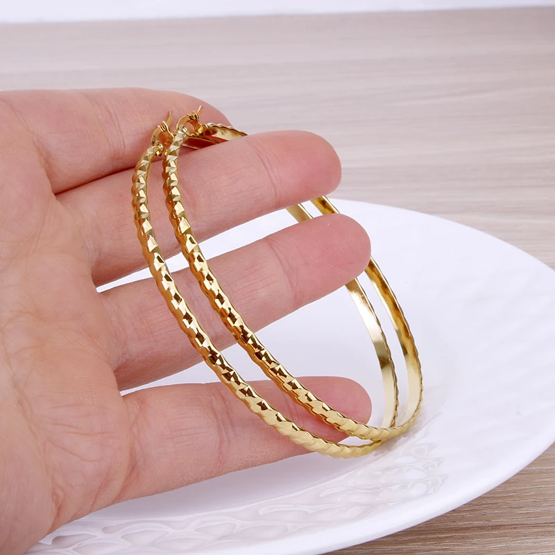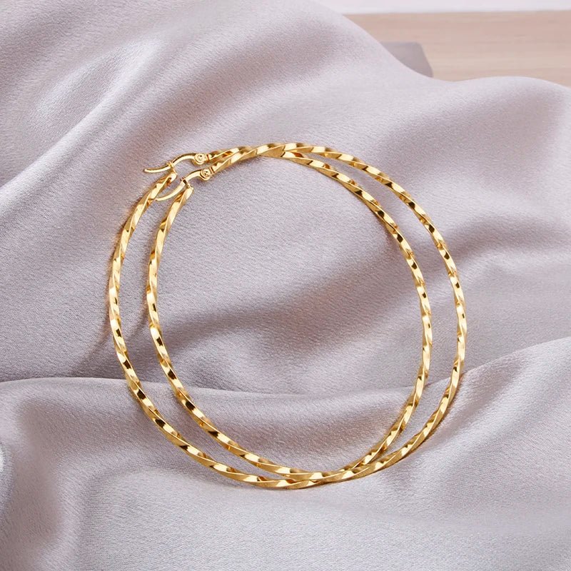 Hgflyxu Gold Color Stainless Steel Big Large Hoop Earring for Women Chinese Design Ladies Ear Fashion Jewelry Party High Quality