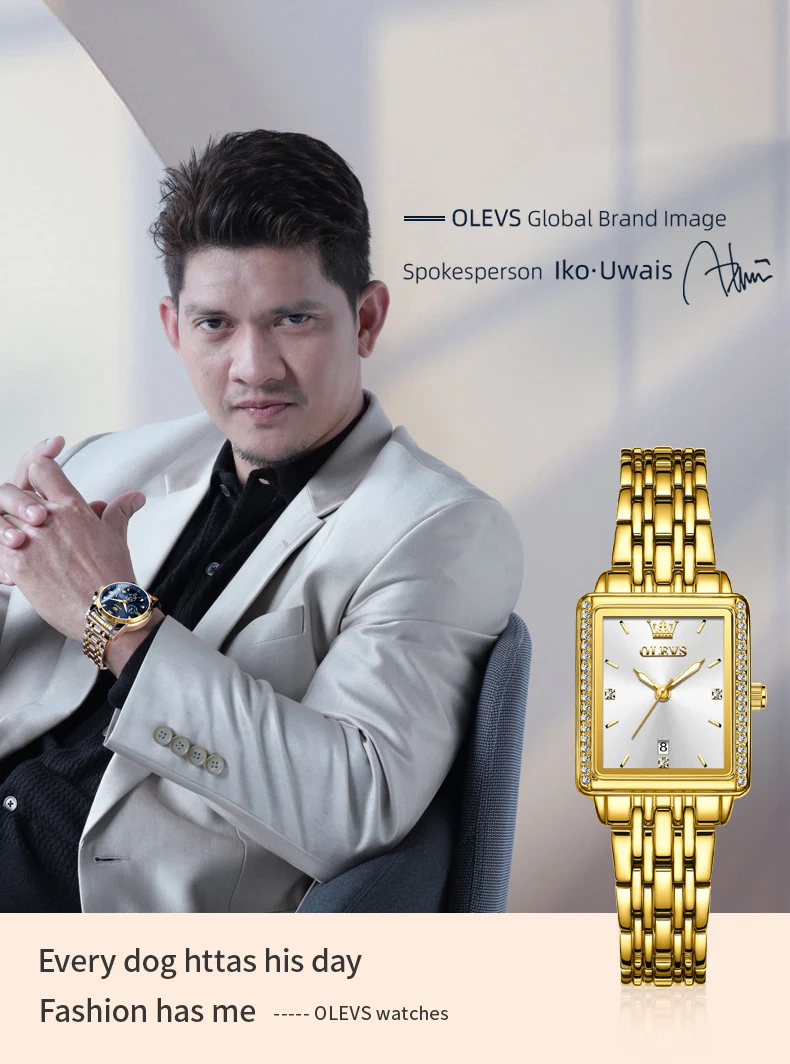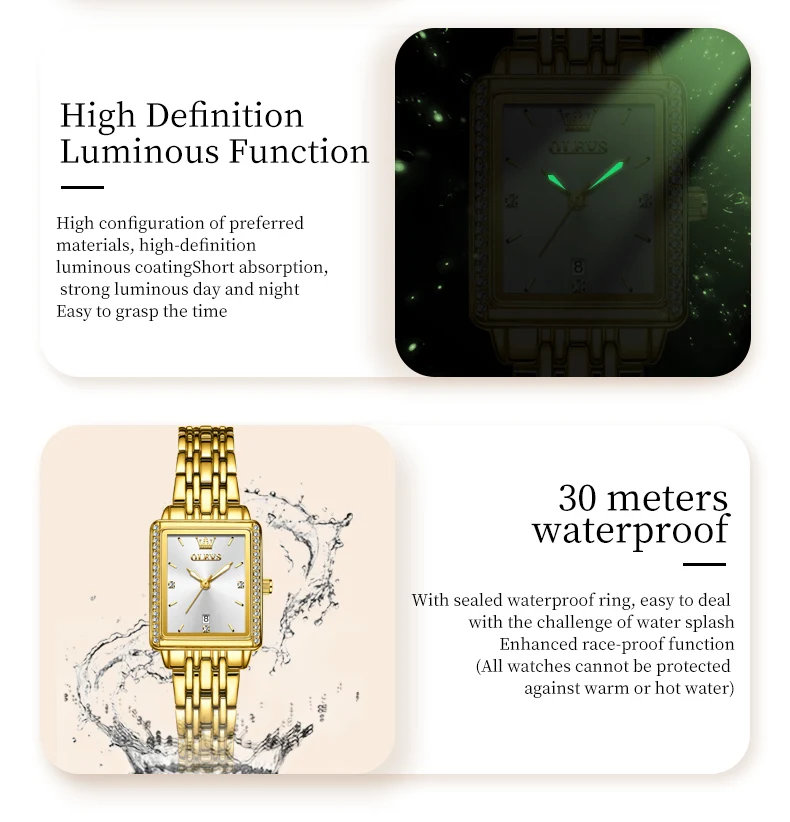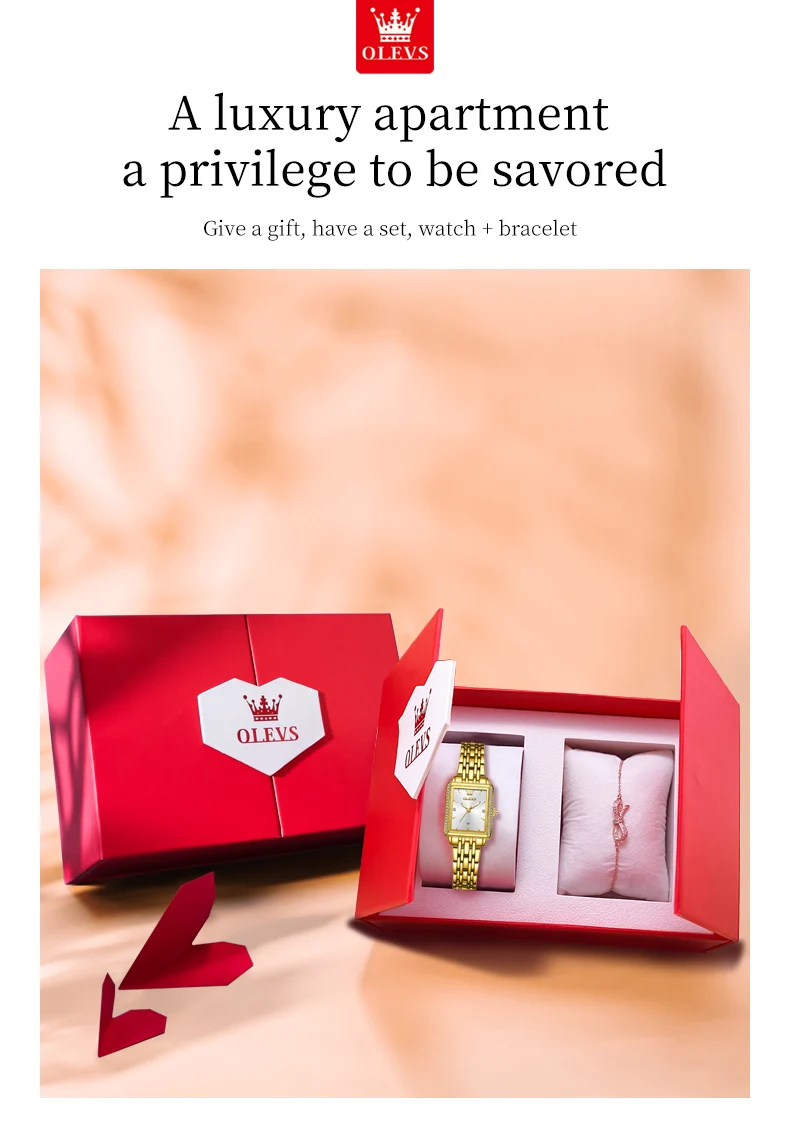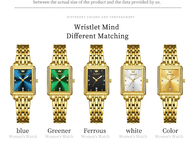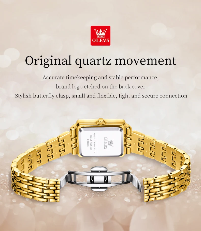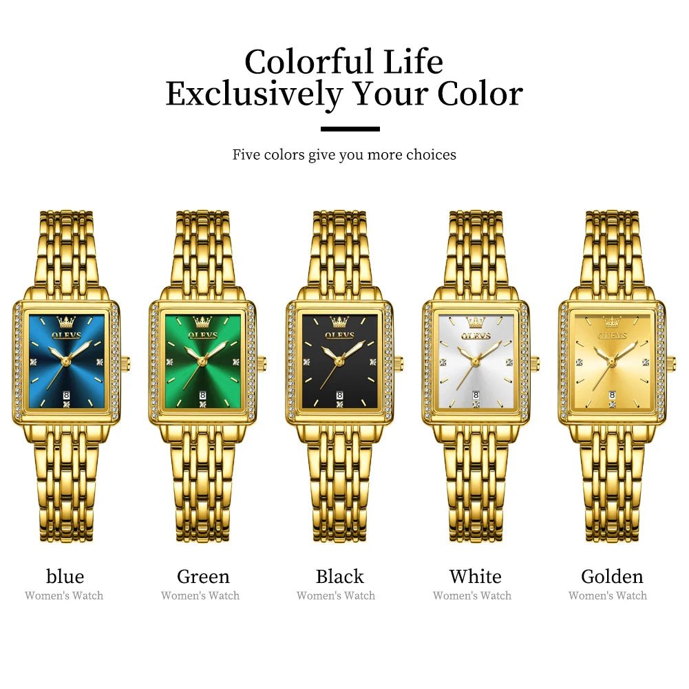 OLEVS Luxury Women's Quartz Watch Fashion Square Dial Solid Color Strap Top Quality Stainless Steel Waterproof Women's Watch