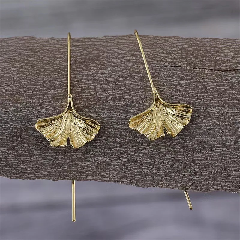 Personalized Ginkgo Leaf Design Simple Plant Ears Perforated Eardrops Versatile Earrings Jewelry Gifts Giving To Friends