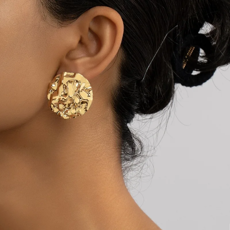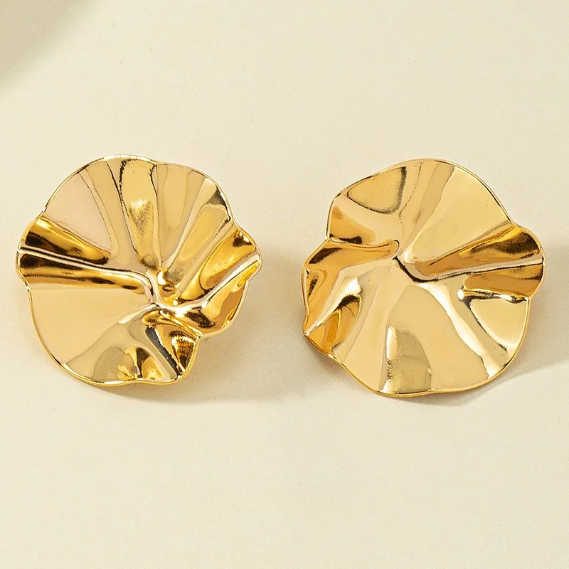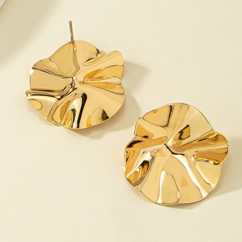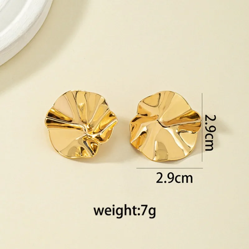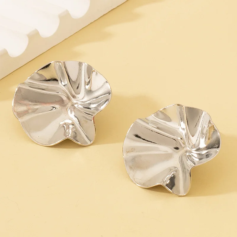 Simple Smooth Pleated Irregular Metal Earrings For Women OL Sporty Holiday Fashion Jewelry Ear Accessories E345