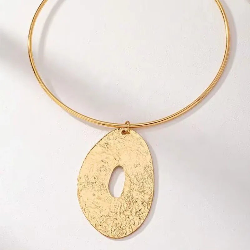 Vintage Punk Metal Oval Medalion Pendant Collar Necklace for Women Exaggerated Personality Design Party Jewerly Gifts